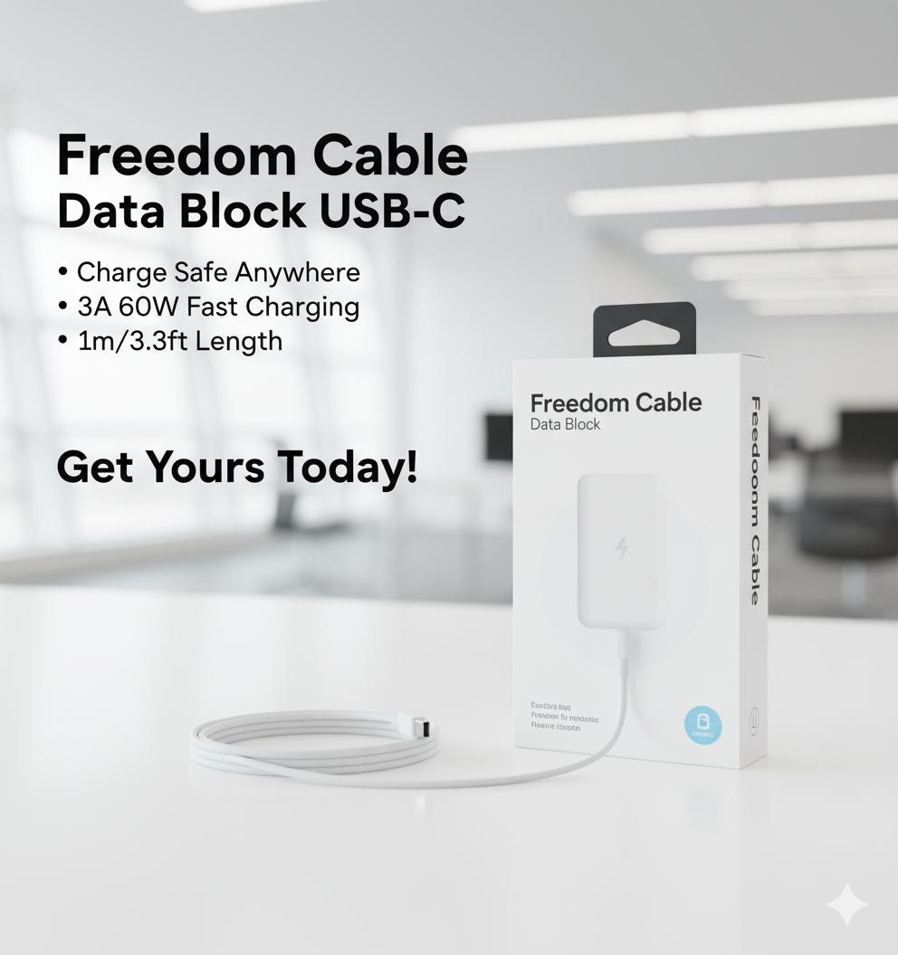 The Freedom Cable Data Block USB-C is designed for users who prioritize both security and performance. This cable allows you to power your devices in public spaces—like airports, cafes, or hotels—without the risk of “juice jacking” or unauthorized data transfers.